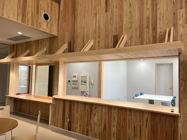 庁舎は滋賀県産の木材「びわ湖材」が使用されており、一部には伊香立の木材も使われています。