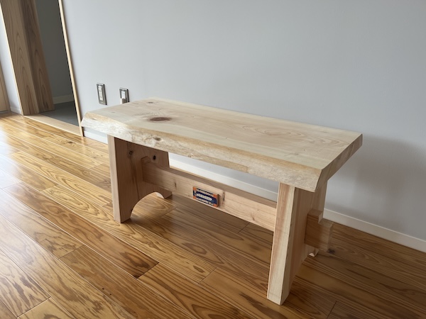 こちらは坂田工務店と伊香立の方々が制作した木のベンチ。